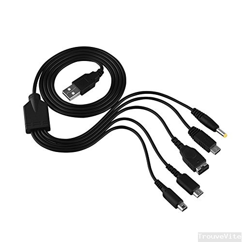 Ymiko Câble de Charge Multifonction 5 en 1 USB pour Nintendo NDS LL/XL 3DS Wii U PSP, 47,2 Pouces