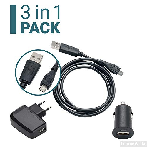 Slabo Set 3 en 1 pour Amazon Fire 7-Tablet | Kindle Paperwhite Câble de Données Micro USB | Mini Chargeur pour Voiture | Chargeur USB Slim - Noir