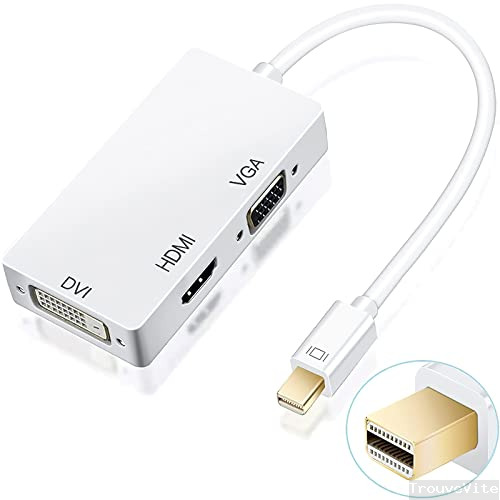 Amanka Câble Adaptateur Mini DisplayPort 3-en-1 et Thunderbolt vers HDMI / DVI / VGA pour Une résolution complète de 4K x 2K et Une stéréo 3D Compatible avec Apple Mac MACbook Pro Air iMac