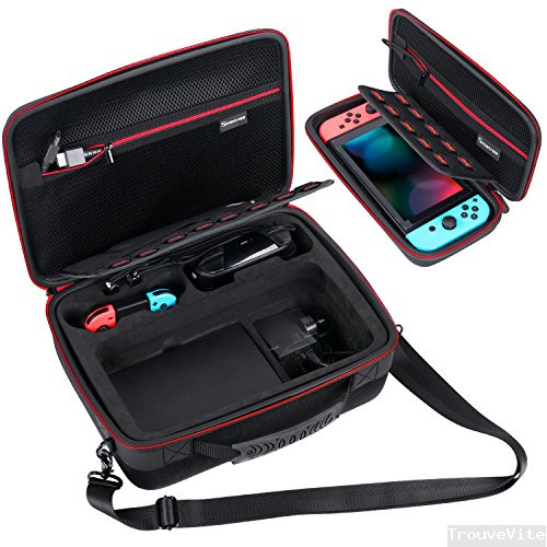 Smatree Housse de Transport étui Rigide Compatible avec Nintendo Switch OLED, Convient à Extra Switch Pro & Switch AC Adapter, Dock, poignée Joy-Con, câble,Cartes, Autres Accessoires, Sac Noir