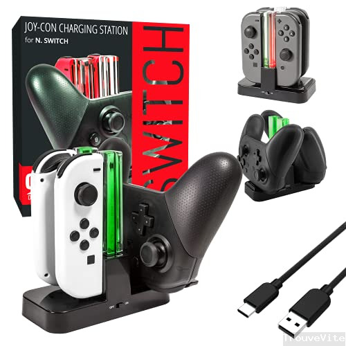 Orzly Station de Charge pour Switch Manette Pro Controller et JoyCons, Docking Station [avec LED Individuelles et Câble USB TypeC]