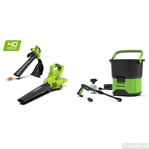 Greenworks Aspirateur-souffleur 40V GD40BV et Nettoyeur haute pression à batterie GDC40 (Li-Ion 40V 280 km/h vitesse d'air régulateur de vitesse 650 Watt 70 bar sans batterie ni chargeur)