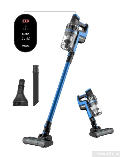 Proscenic P11 Smart Aspirateur Balai sans Fil 30KPA, Aspirateur sans Fil avec 60 Min d'Autonomie, Écran Tactile, 3 Vitesses et 4 Brosses, Aspirateur Balai idéal pour Le Tapis, Sol Dur, Poils d'animaux