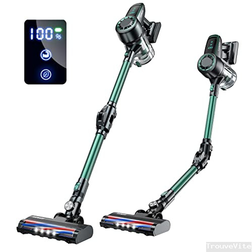 Laresar Aspirateur balais sans Fil, 400W, 30Kpa aspirateur Ecran LED Intelligent, Batterie Amovible, HEPA Filtre, Jusqu'à 55 Min d'autonomie, 2 Modes, Multi-Vitesse 【Elite Pro】