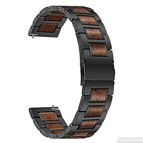 TRUMiRR Compatible avec Huawei Watch GT 2 Pro/GT 2 46mm Bracelet de Montre, 22mm Acier Inoxydable & Bracelet de Montre en Noyer Naturel pour Huawei Watch GT Elegant/GT Active/GT Sport/GT 2e