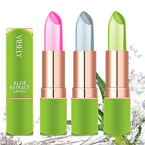 Ensemble De Rouge à Lèvres En Gel d'aloe Vera DeLongue Durée, Gireatick 3PCS Couleur Magique Changeant Avec La Température, Brillant à Lèvres Baume à Lèvres Hydratant