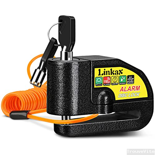 Linkax Bloc Disque Alarme Antivol Moto Bloque Disque Scooter Disc Lock avec Alarme de 110db,2Clés,1.2m Câble Antivol,1 Sac de Bloc Disque Alarme pour Moto/Vélo/Scooter
