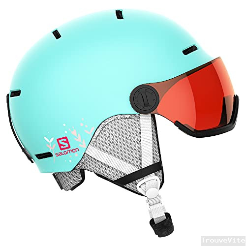 Casque de ski et snowboard pour enfant avec visière Salomon, Coque moulée + coque intérieure en EPS, Taille M, Tour de tête 53-56 cm, Turquoise (Aruba Glossy/Univ.), L40837000