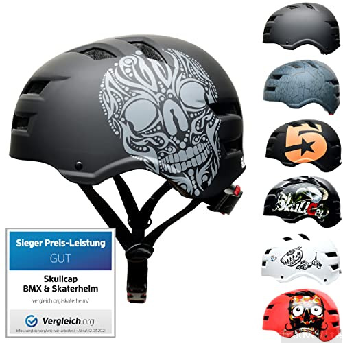 SkullCap® Casque vélo Homme et Femme - Le Casque Haute Protection, pour Skateboard/Trotinette/Roller. Convient Aussi pour la Trottinette Electrique Adulte (Casque Taille Adolescent Adulte M et L)