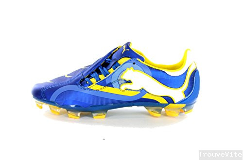 PUMA Powercat 2.10 Elektro FG - Chaussures de Foot Bleu/Jaune/Blanc - Taille 7.5
