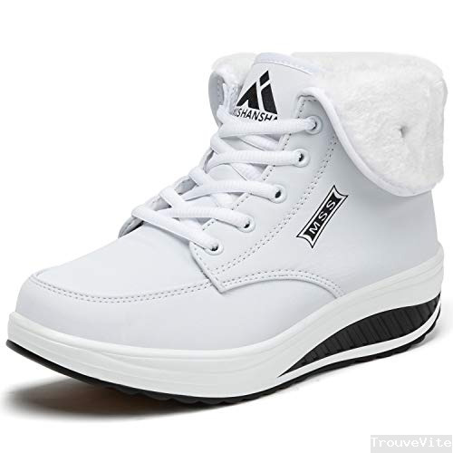Mishansha Femmes Boots Fourrées Hiver Antidérapant Bottines Femelle Imperméable Bottines Apres Ski Adulte Bottes Neige Femme Chaud, Blanc 42