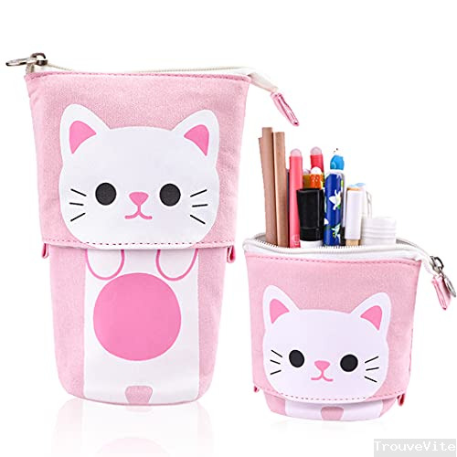 Rolin Roly Trousse à Crayons Chat Mignon Plumier Trousse Grande Papeterie Pouch Maquillage Fille Organisateur Étui à Crayons RÉTractable pour Maquillage Students Pencil Case