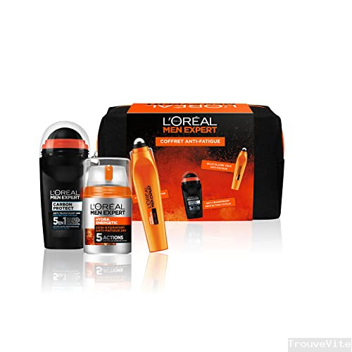 L'Oréal Men Expert - Trousse Anti-Fatigue pour Homme - Soin Hydratant Visage + Soin Contour des Yeux + Déodorant - Enrichi en Guarana & Vitamine C - Hydra Energetic - Coffret 3 Produits