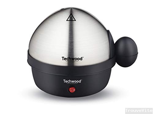 Techwood TO-007 Cuiseur 1 à 7, Œufs durs, Mollets, Coques et moulés, Acier brossé, Noir