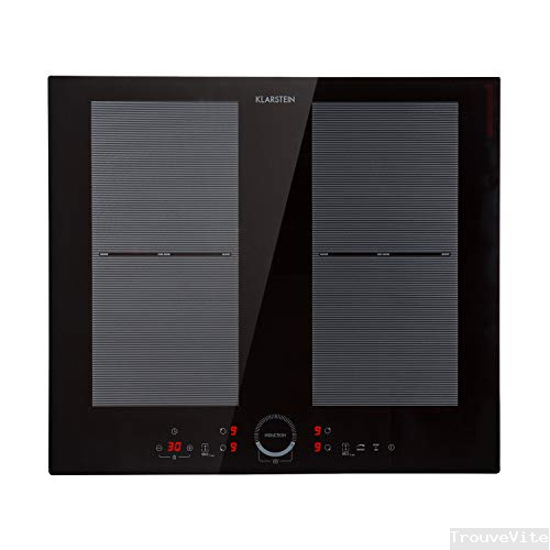 KLARSTEIN Delicatessa 60 - Tables de cuisson, Plaque induction, 7000W (2 x 2000W & 2 x 1500W), 4 foyers: chacun 19,5 x 19 cm, Puissance réglable en 9 positions, Minuterie, Encastrable - Noir
