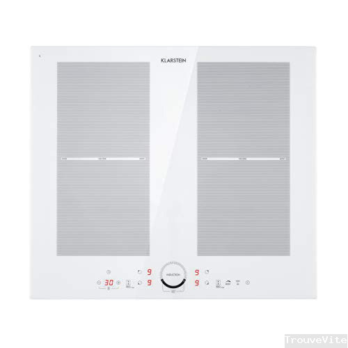 KLARSTEIN Delicatessa 60 - Tables de cuisson, Plaque induction, 7000W (2 x 2000W & 2 x 1500W), 4 foyers: chacun 19,5 x 19 cm, Puissance réglable en 9 positions, Minuterie, Encastrable - Blanc