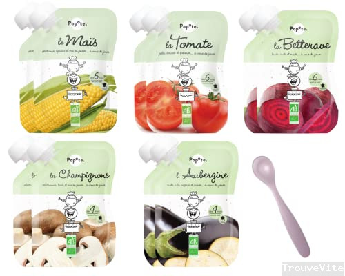 Popote Le Best Des Fruits Pack De 10 Gourdes + 1 Cuillère En silicone Offerte Couleur Aléatoire