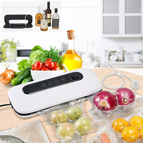 Machine Sous Vide, 4 en 1 Humide et Sec Machine Sous Vide Alimentaire, Appareils de Mise Sous Vide Pour Aliments, Système Automatique de Sous Vide, Inclus Tuyau et 5 Pcs Sac Sous Vide(Blanc)