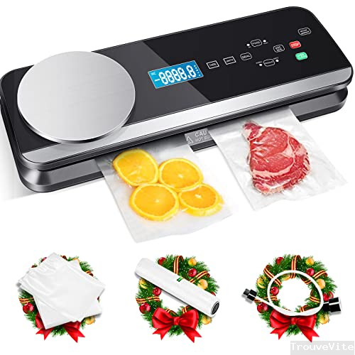 Machine Sous Vide Alimentaire Raycial 80Kpa Automatique Appareil de Mise Sous Vide avec balance de cuisine & écran LCD, Machine de Scellage à Cuisine Sous Vide pour la conservation des aliments