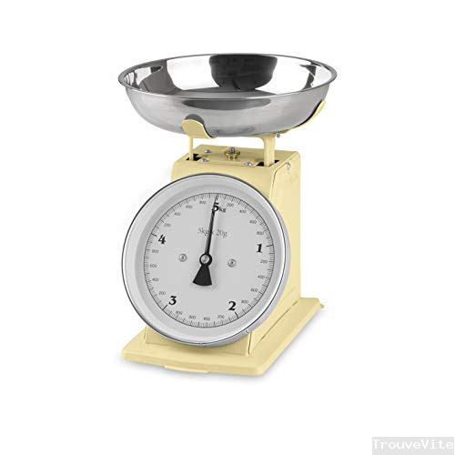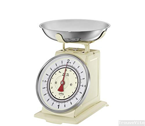 Fonctionne sans piles ni électricité. Montez simplement sur la surface de pesée et la détermination exacte du poids commence. Pèse-personne élégant au look rétro avec réajustement manuel à l'aide d'une petite molette