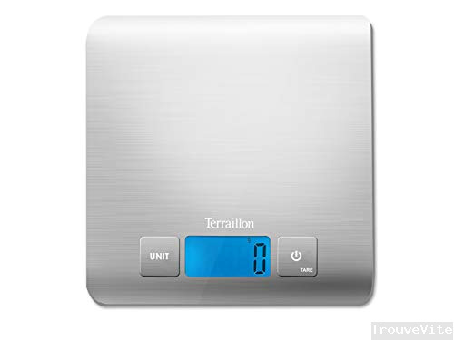 Terraillon Balance de Cuisine Tare Conversions Liquides Revêtement Anti-Poussière Portée 10 kg Supreme Argent/Noir