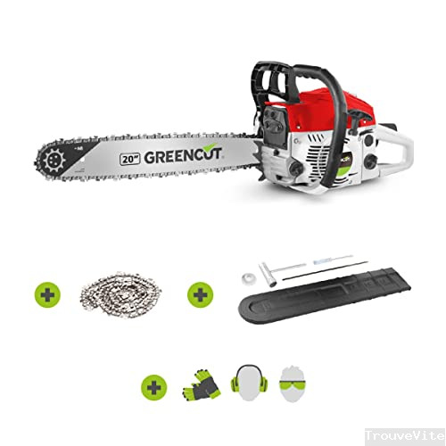 Tronçonneuse thermique à essence, moteur 2 temps 61,2cc 3,6hp, lame 20", coupe 50,8cm, avec 2 chaînes et anti-vibration - Greencut GS610X