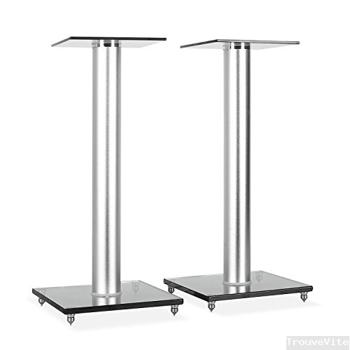 Paire de supports d'enceintes élégants avec une capacité individuelle de 10 kg max. | Surface d'accueil rotative de 20 x 20 cm en verre endurci | Colonne centrale angulaire en aluminium avec conduite de câble pratique