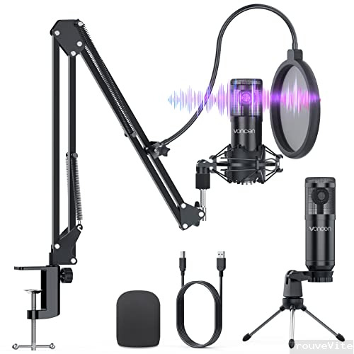 Voncen Microphone USB à Condensateur Enregistrement pour Ordinateur, Kit de Microphone Complet avec Support Micro à Bras Réglable, Micro Cardioïde 192kHz, Support Anti-Choc pour Jeux Streaming Youtube