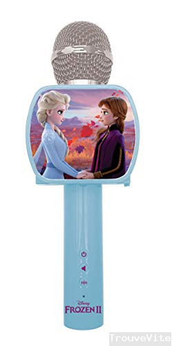 Prise microphone (micro non inclus) pour le transformer en karaoké et chanter avec les héroïnes de la Reine des Neiges, Anna et Elsa !