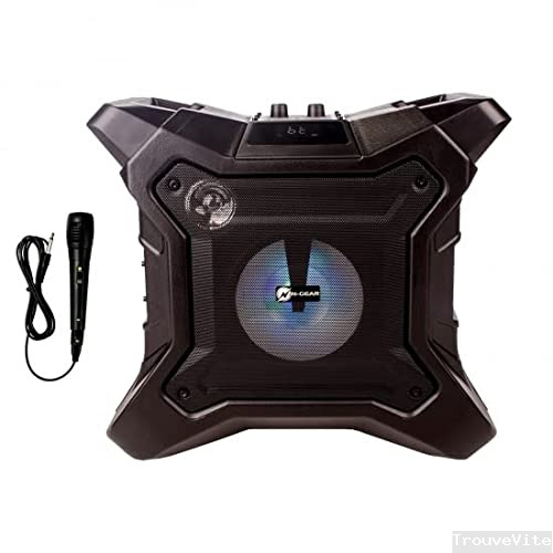 Le système karaoké N-Gear NGS828-BT est équipé de deux haut-parleurs d'une puissance totale de 30 watts et est monté sur un pied avec système d'éclairage intégré Livré avec 2 micros vous pouvez lire vos musiques via Bluetooth l'entrée audio ou depuis une clé USB Il est possible enregistrer vos talents de chanteur sur clé USB 2 Animations lumineuse sont présentes une sur le pied la seconde sur l'appareil façon DISCO Contrôle du volume des micro et fonction Echo Que la fête commence !