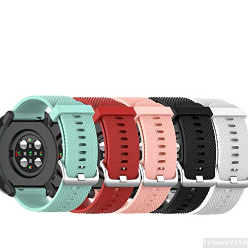 Cadran 34 mm et lunette en aluminium anodisé, bracelet silicone T-bar interchangeable 14 mm . Résolution d'affichage : 240 x 201 pixels