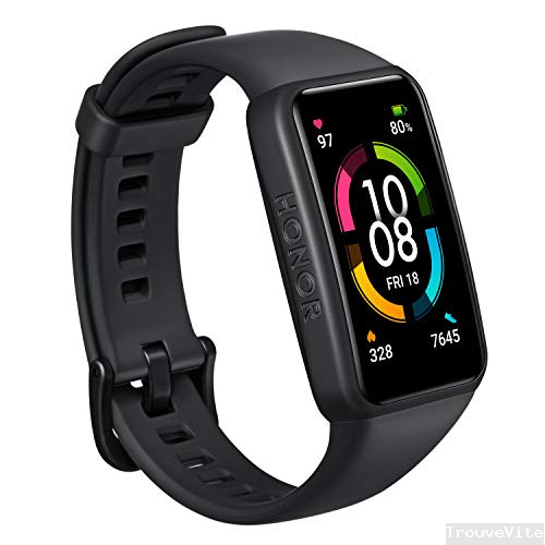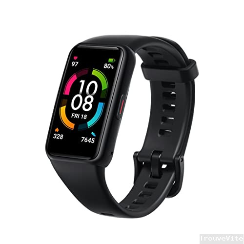 HONOR Band 6 Montre Connectée Écran 1,47" Étanche Bracelet avec Cadiofréquencemètre Moniteur de Sommeil Podometre Smartwatch pour Femmes Homme Android iOS Téléphone, Noir