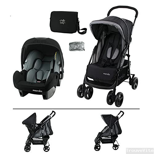 Poussette combinée 3 en 1 - GIULIA - Siège auto BEONE (grp 0+) recommandé 4 étoiles ADAC - Sac à langer + habillage pluie - Nania (Gris chine)