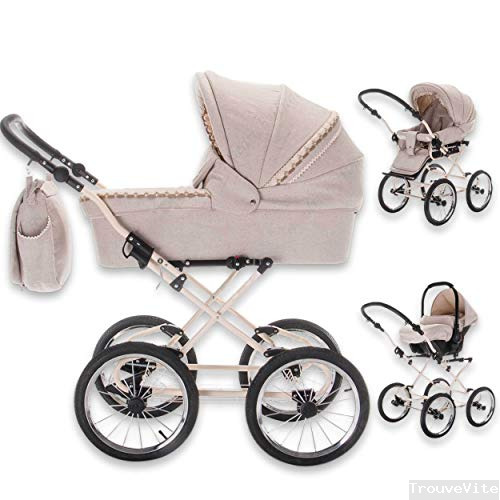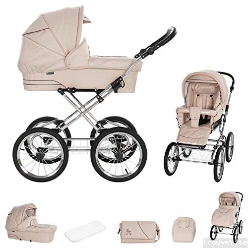 Le kit 4 en 1 Friedrich Hugo Berlin : le grand set Berlin de Friedrich Hugo vous accompagne et votre enfant de votre nourrisson jusqu'à 4 ans. ans. Fiabilité, stabilité, commodité et tout cela convient pour la ville, la forêt, les routes de gravier et même les pavés. Cet équipement bien pensé et géant vous ravira et votre bébé. Le système Quick-Click permet de monter tous les accessoires dans le sens de la marche et dans le sens contraire de la marche.