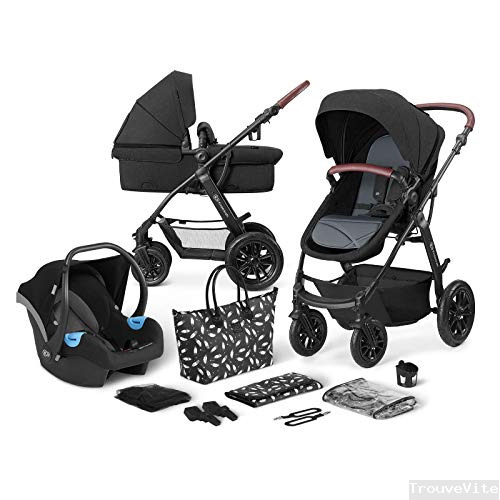 Kinderkraft B-TOUR Poussette combinée 3 en 1 de 0 Mois à 22 Kg, avec Siège Auto, Capote imperméable filtre UPF50+, XL Siège, Noir