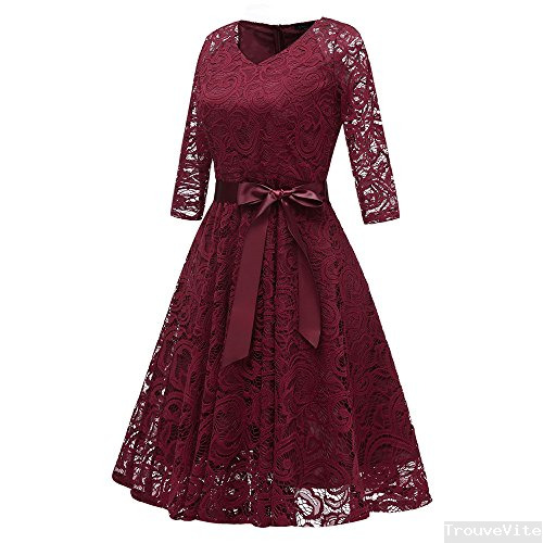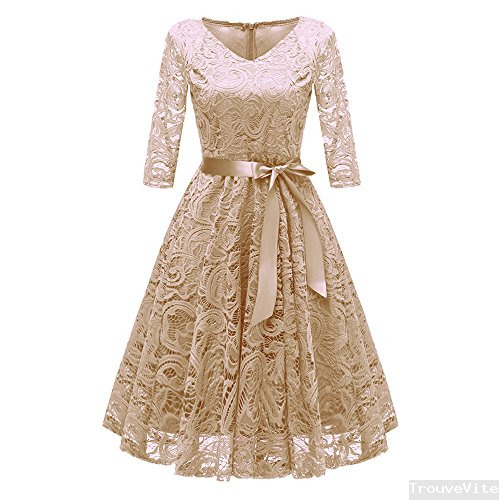 Longueur Midi Robe Femmes,Femmes Vintage Princesse Floral Dentelle Cocktail V-Neck Party Aline Swing Dress d'honneur la Petite Noire guerlain Fond Chemise De Cocktail à Volants à Manches Courtes Robe