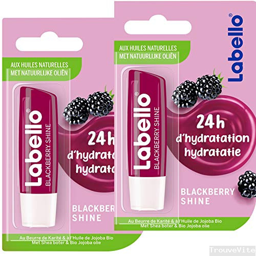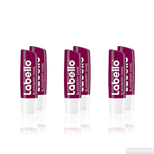 Labello Blackberry Shine Lot de 6 baumes à lèvres avec éclat rouge et pigments scintillants 6 x 4,8 g