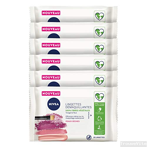 NIVEA Lingettes démaquillantes Aloe Vera 100 % Fibres végétales (6 x 25 pcs), démaquillant visage pour tous types de peaux, lingettes nettoyantes biodégradables – 150 pièces