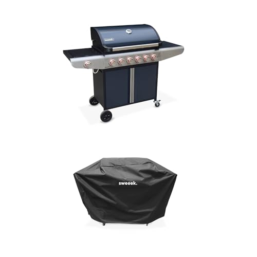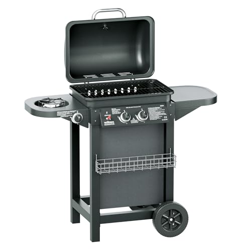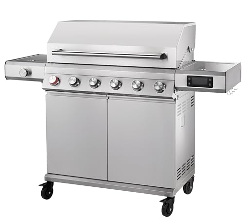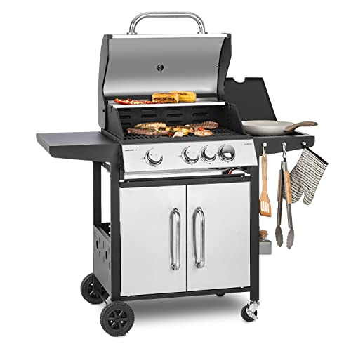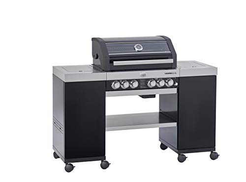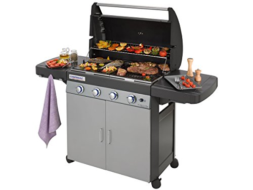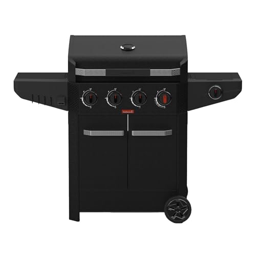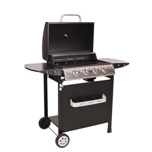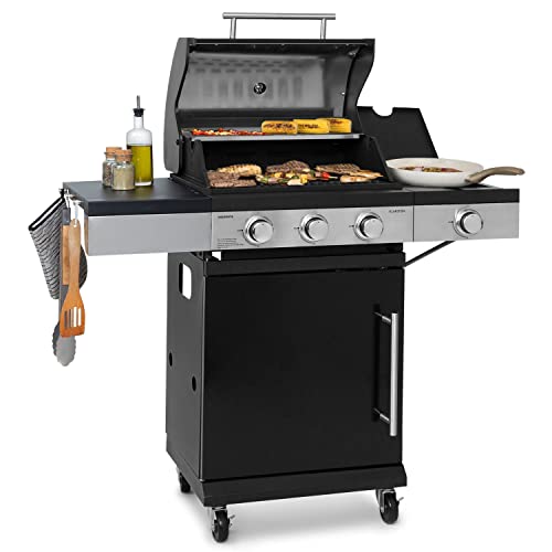 Tarrington House Barbecue à gaz Paxton, 4 brûleurs+ brûleur latéral, 17 kW, puissance 59 000 BTU, avec plancha, roulant, avec couvercle, pour jardin, extérieur