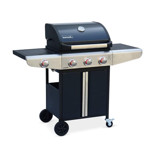 PUISSANCE OPTIMALE: Le Barbecue Tarrington House Paxton 4 Brûleurs avec Brûleur Latéral offre une puissance totale de 17 kW grâce à ses 4 brûleurs principaux en acier inoxydable et son brûleur latéral, garantissant des résultats de cuisson optimaux pour vos moments de cuisson en plein air.