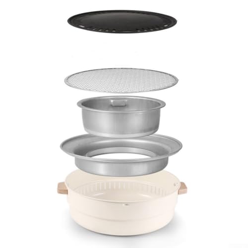 ENSEMBLE POLYVALENT: Les 4 grilles de cuisson en fonte émaillée avec système multifonction et plaque de cuisson, ainsi que la grille de réchauffage en acier, créent un ensemble polyvalent pour des préparations culinaires variées.