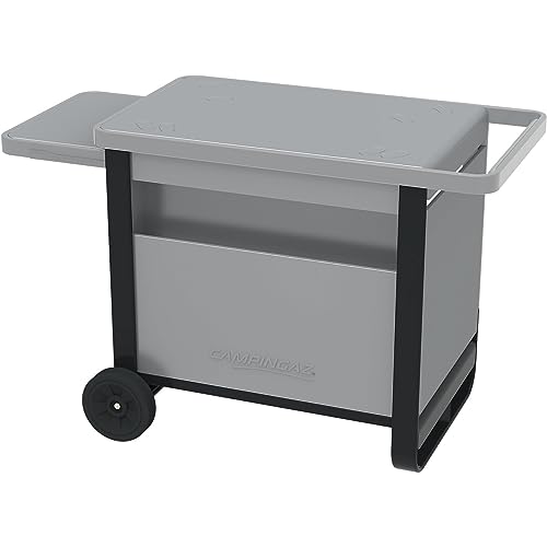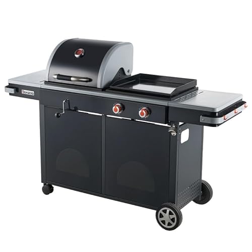 STOCKAGE DISCRET ET MOBILITÉ: La conception intelligente inclut un cabinet inférieur pratique pour loger une bouteille de gaz de 11 kg, et les 4 roulettes pivotantes verrouillables facilitent le déplacement de ce barbecue, ajoutant une dimension pratique à son élégance.