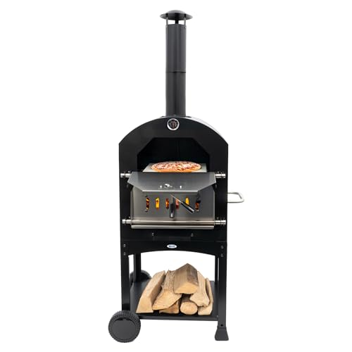 Mimiuo Four à Pizza Extérieur au Bois et Charbon de Bois avec Système de Rotation et Pierre à Pizza de 33 cm