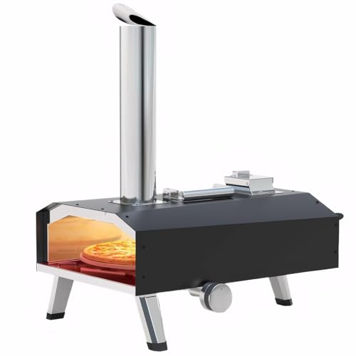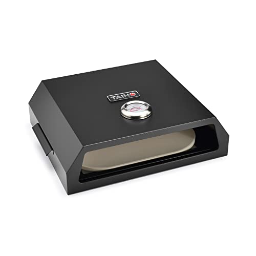 REGULATION FACILE DE LA CHALEUR: Les trous de visualisation pratiques permettent de surveiller facilement la taille des flammes et l'état de la pizza. Tournez la pizza toutes les 20 à 30 secondes pour garantir une cuisson uniforme. La pierre à pizza de haute qualité (33x33 cm) fournie avec le four maintient une chaleur uniforme et assure un fond croustillant.