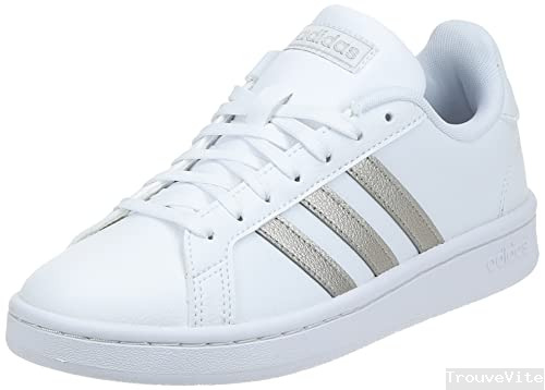 adidas Grand Court Base, Basket Femme, Cloud White/Vision Metallic/Grey, 41 1/3 EU