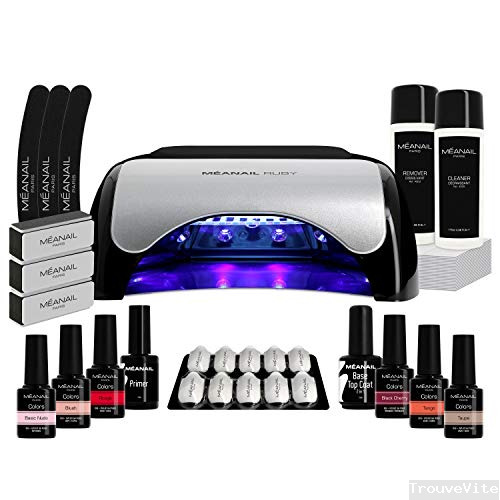 Kit Manucure - Vernis Semi Permanent - Lampe UV LED 48W - Lot 6 Vernis à Ongles - Gel Soak off - Base Top Coat Primer Lime - Nail art Complet - Cruelty Free - Vegan - Coffret Ruby - Méanail Paris