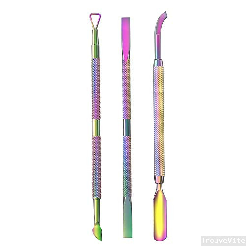 Lot de 3 repousse-cuticules professionnels en acier inoxydable pour ongles des doigts et des orteils - Pour femme et fille - CP-3 (arc-en-ciel)