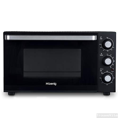H.Koenig Mini Four 30L Electrique FO30 Posable Compact Multifonction Performant 1500W Programmable 6 modes de cuisson, 230°, Minuteur 60 min, Porte en Verre double vitrage, Plaque cuisson antiadhésive