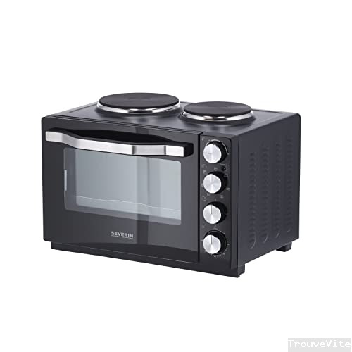 SEVERIN Mini-Four à chaleur tournante 30 L avec tournebroche et plaques de cuisson, Four posable 2 500 W design élégant, Mini-four électrique minuteur 120 min, Noir/Inox, TO 2065