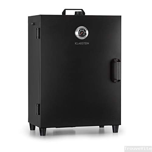Klarstein Flintstone Four fumoir : inox noir, 1600W, thermostat réglable, thermomètre intégré, 3 grilles de fumage, porte à double paroi en inox noir, noir